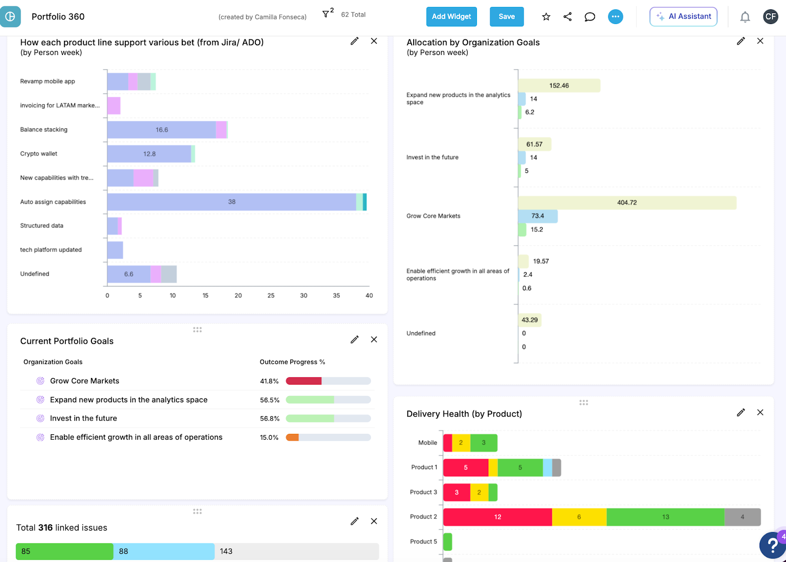 Actionable Step: Deploy the Allocation Dashboard to instantly compare Planned, Reported, and Completed scope. Mandate its use during OKR reviews and strategic steering meetings. This provides an instant, quantitative understanding of investment versus outcomes, ensuring meetings focus on future strategy rather than reporting on past results.